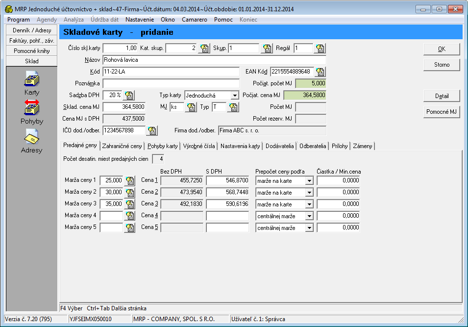 s možností zaúčtování skladových položek jak metodou A, tak i B. Oceňování skladových zásob je možné váženým průměrem nebo metodou FIFO. Podporuje tvorbu hlášení INTRASTAT. -