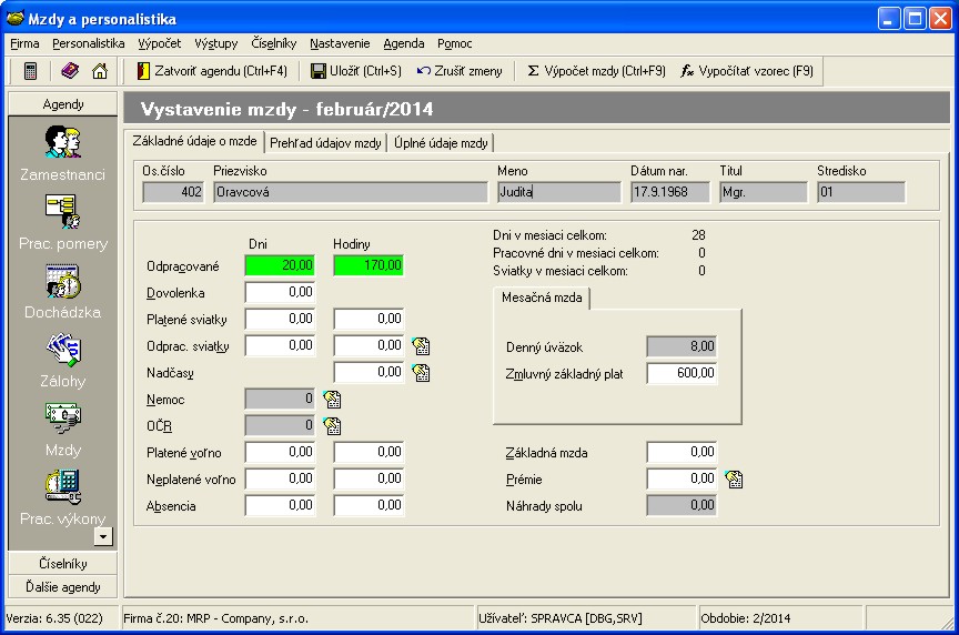 vedení mzdové a personální agendy, výpočty exekucí, definice uživatelských mzdových položek, komplexní výstupní sestavy, ...